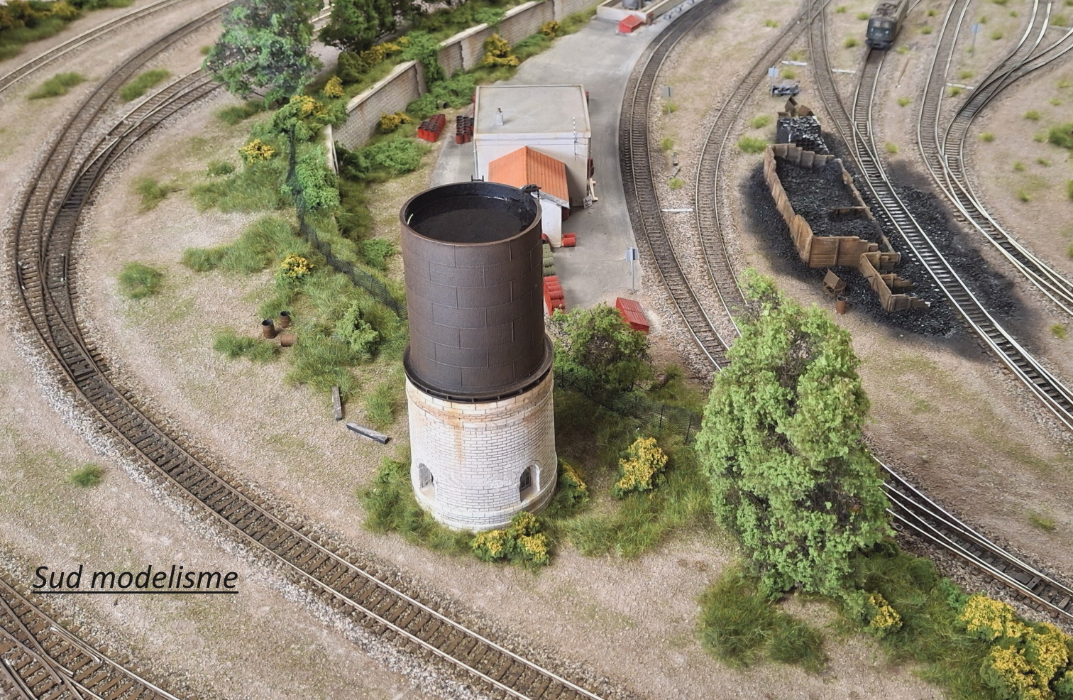Les châteaux d’eau sont omniprésents sur toutes les lignes de France, dans différentes variantes et volumes. Pour les petites gares ce sont des cent mètres cubes. Les grands axes reçoivent des deux cents mètres cube. La maquette que nous vous présentons a été réalisée à partir de l’original (qui est un deux cents mètres cube) se trouvant sur la ligne Marseille – Vintimille, en gare de Hyères La Pauline, toujours visible de nos jours. Ce genre d’ouvrage servait à alimenter en eau les grues hydrauliques