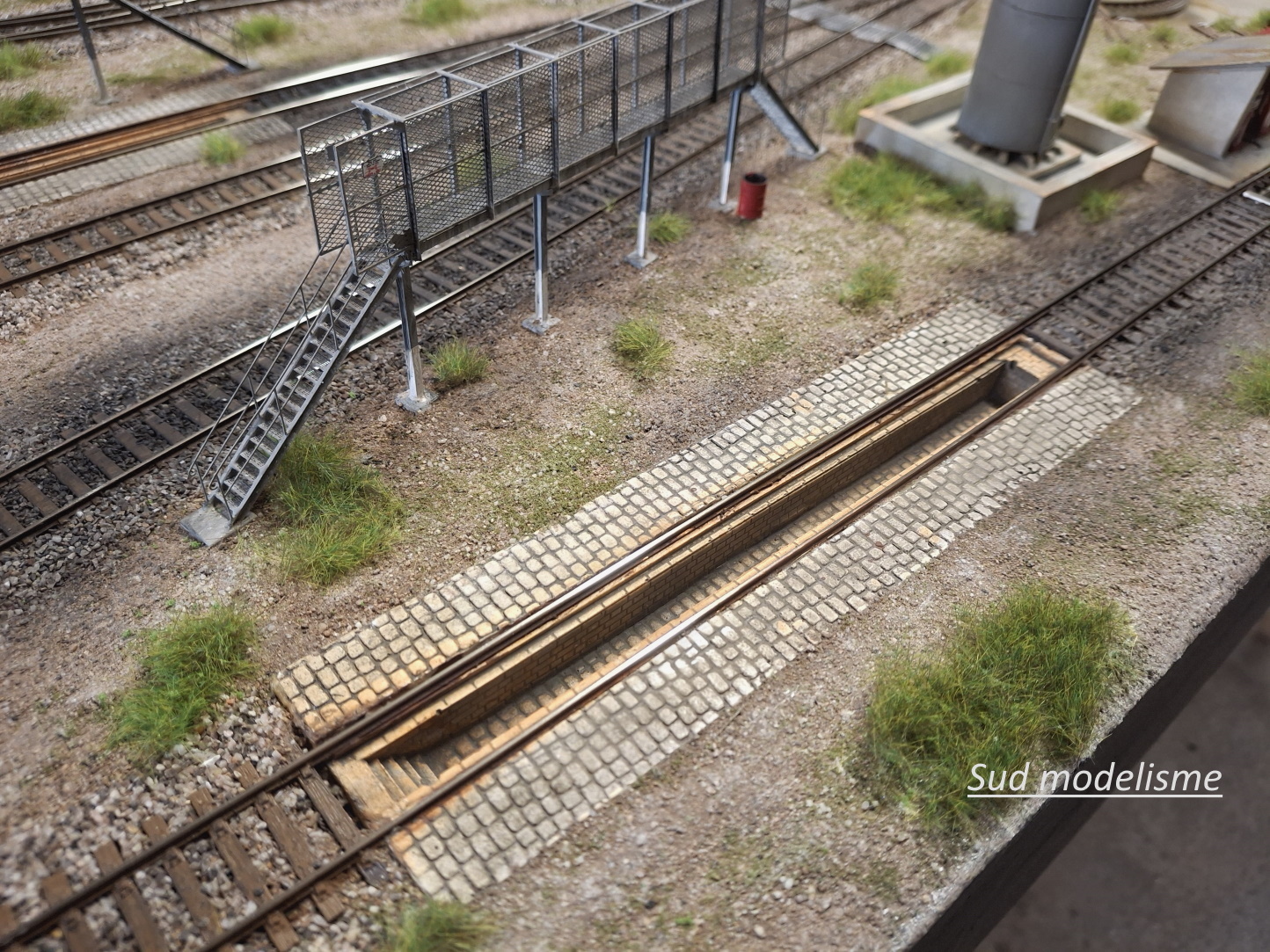 La fosse de visite sert à examiner le dessous des machines (pour par exemple leurs graissages). Elle se situe à l’entrée ou à la sortie du dépôt, et dans le fond des rotondes. Cela s’appelle le gril de préparation. On y trouve aussi les fosses à piquer et les grues hydrauliques de distribution d’eau. Le modèle reproduit une fosse de moyenne importance, avec petit pavé dans le fond et sur le côté, un escalier se trouve à une de ses extrémités.